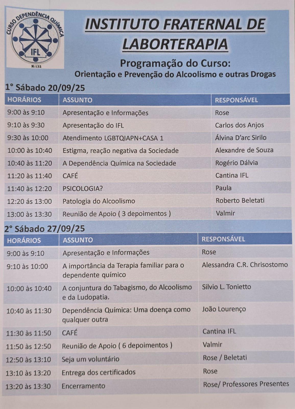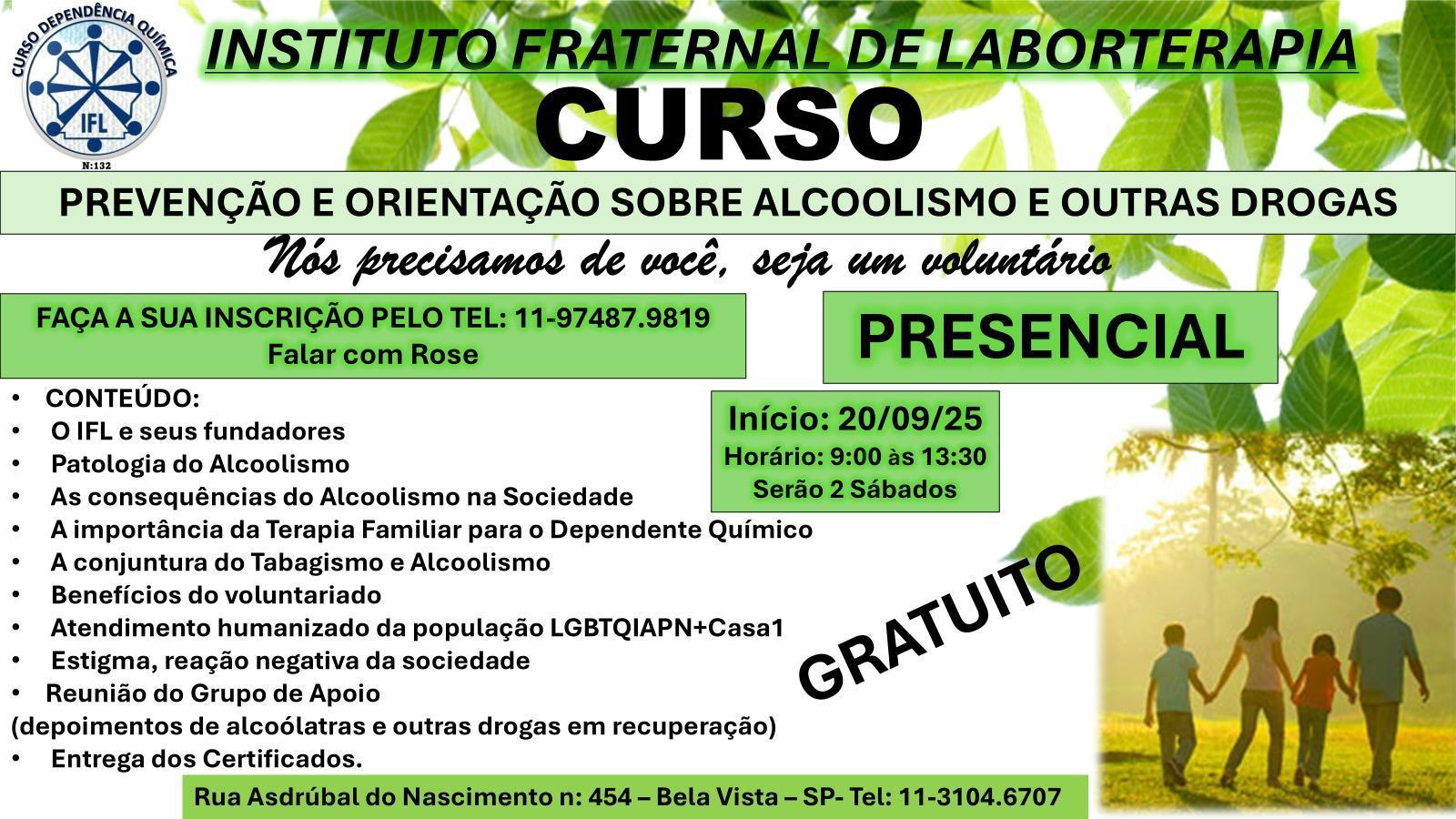 INSTITUTO FRATERNAL DE LABORTERAPIA CONCLUI MAIS UM CURSO DE PREVENÇÃO E ORIENTAÇÃO SOBRE ALCOOLISMO E OUTRAS DROGAS
